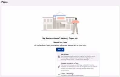 You will then have to add your business page, to do this click on the ‘Business Settings’ panel, then go to ‘Accounts’ and click ‘Pages’ From there you will be able to add your page.